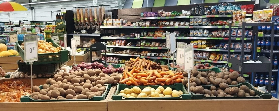 В «Евроопте» цены варьируются: белорусский картофель — 0,91–0,97 рубля, фасованный — 1,39 рубля, мытый — 2,79 рубля, красный — 3,19 рубля.