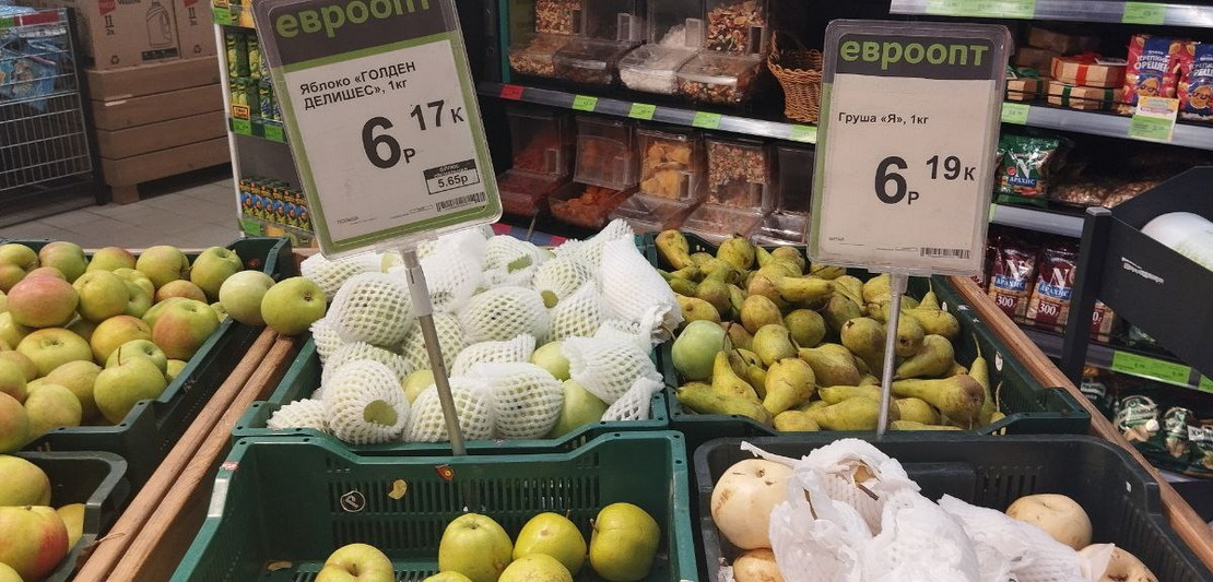 В магазинах ситуация иная. В «Евроопте» белорусские яблоки стоят от 3,29 рубля за килограмм, польские — 6,17 рубля, китайские — 6,99 рубля. Груши из Бельгии — 6,19 и 7,69 рубля за килограмм.