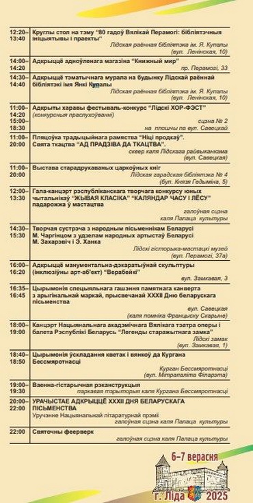 В Лиде 6–7 сентября пройдёт XXXII День белорусской письменности: программа мероприятий