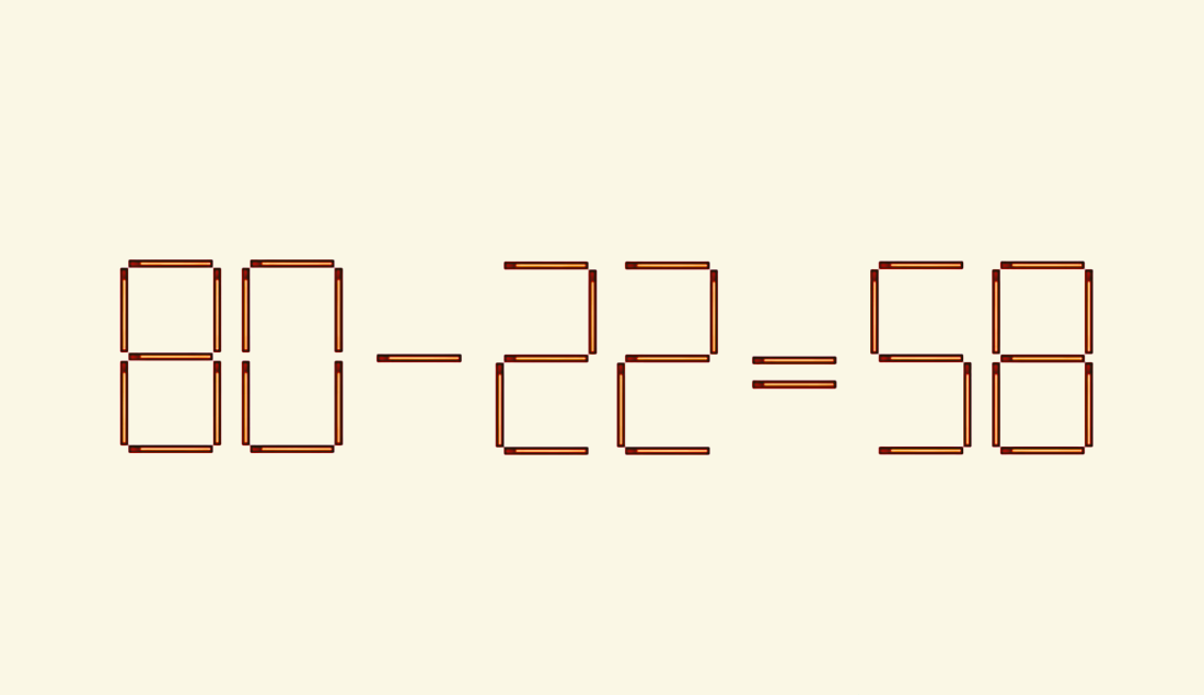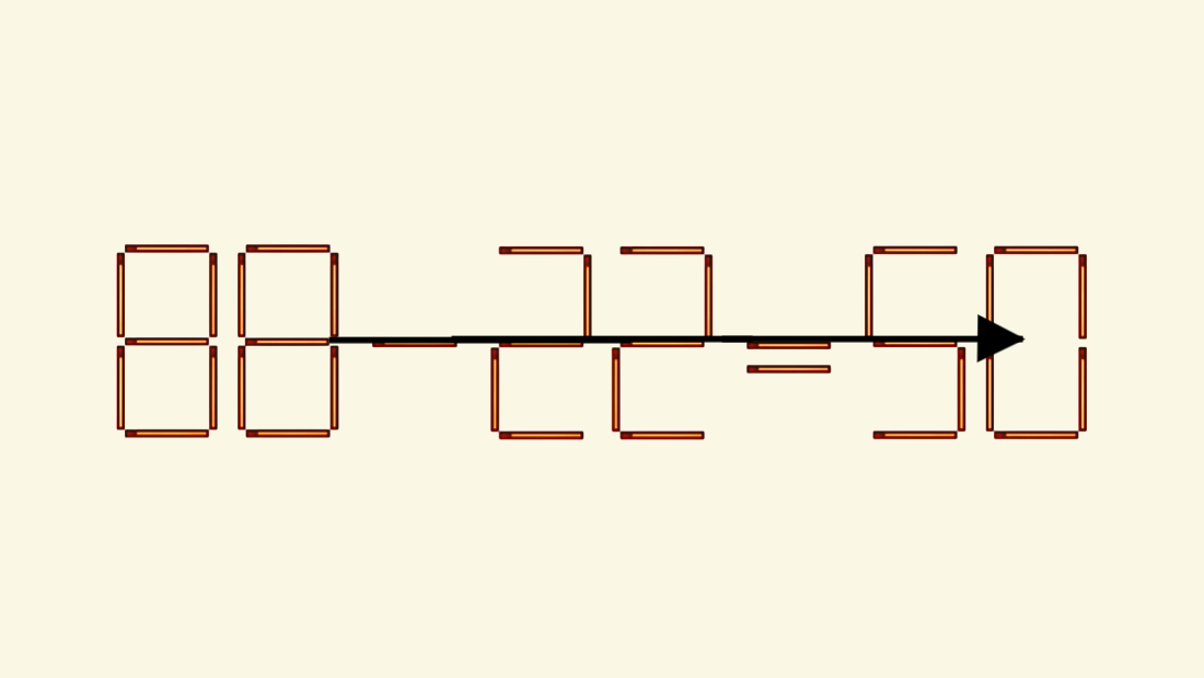 Нужно исправить это неправильное равенство так, чтобы оно стало верным. Условие: разрешён только один ход — переставить одну спичку.