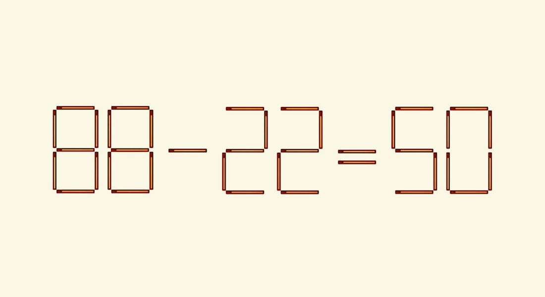 Переставьте ровно одну спичку так, чтобы получилось правильное равенство. Задача непростая, ведь все числа здесь двухзначные, а значит, вариантов решений немало.