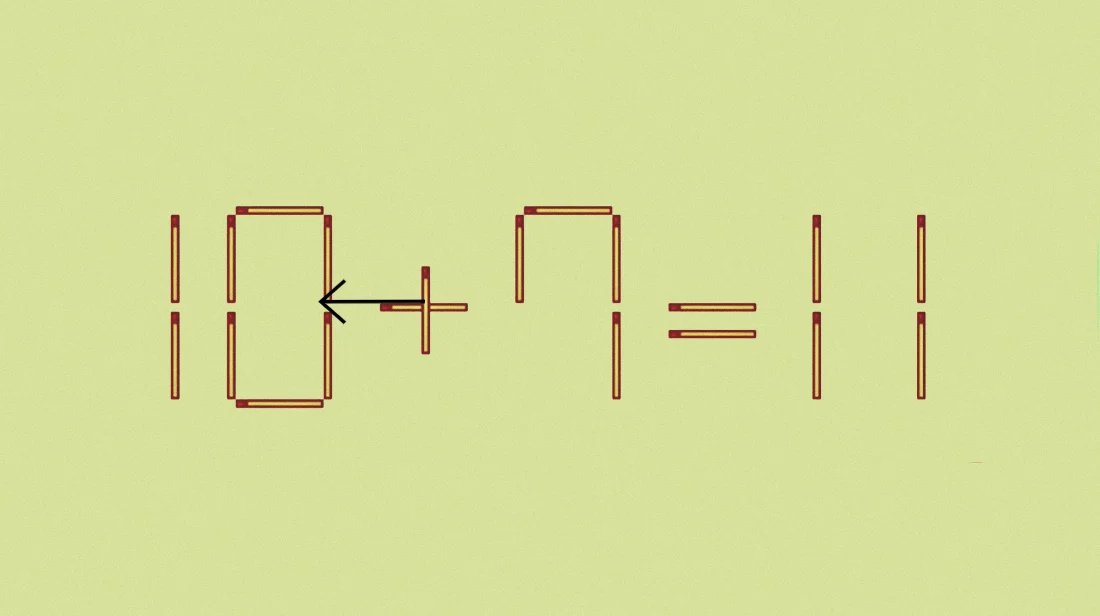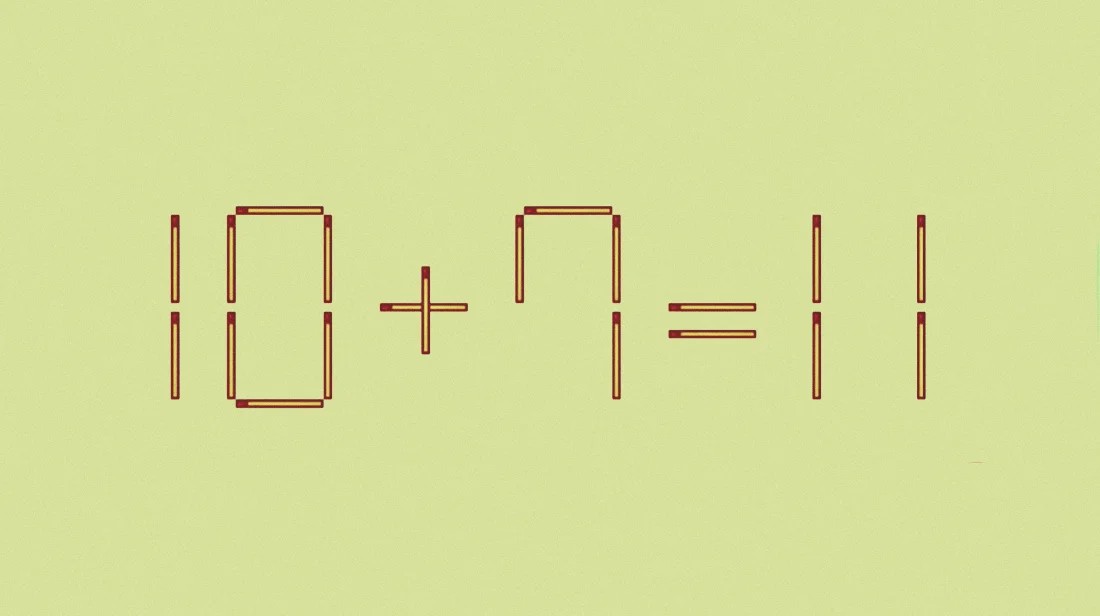 Перед вами уравнение, составленное из спичек: 10+7=11.