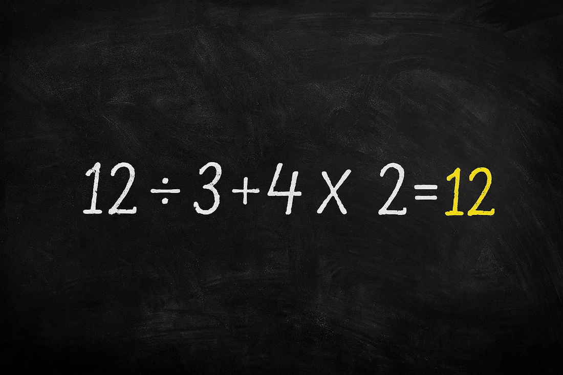 Вот тот самый пример: 12 ÷ 3 + 4 × 2 = ?