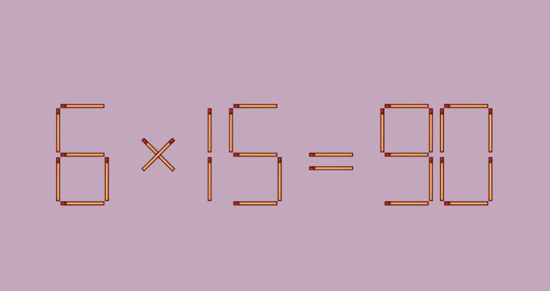 Из числа 8 берём одну спичку и переносим её на число 5, превращая его в 6. Получаем новое равенство: 6×15=90.