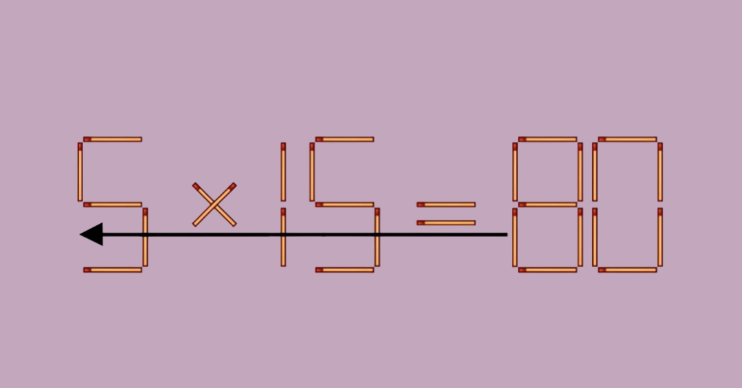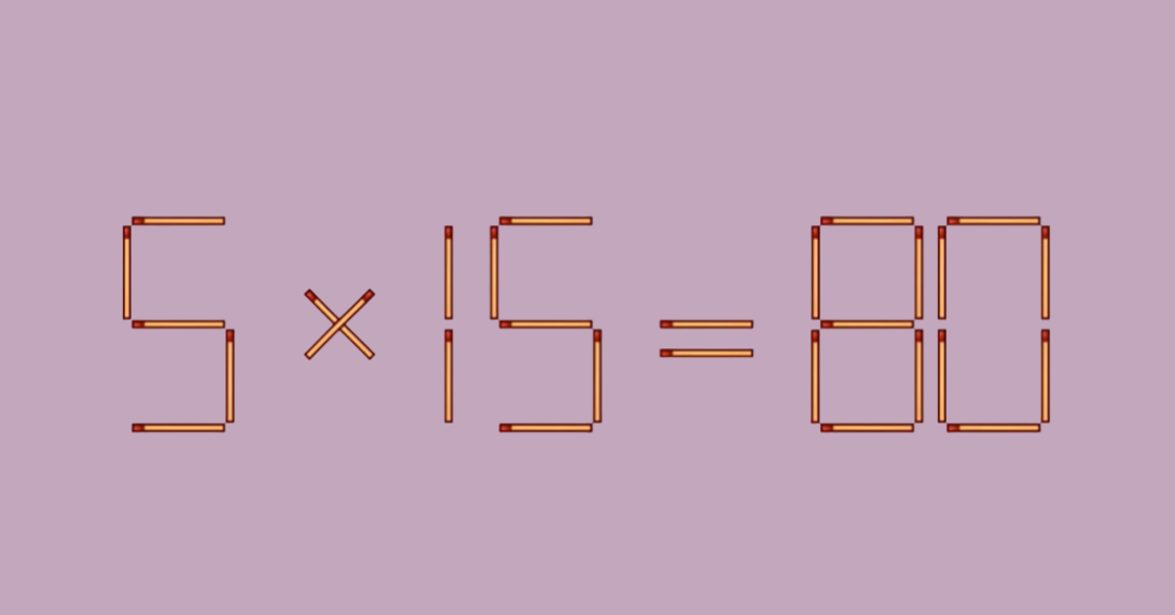 Итак, вот само неравенство: 5×15=80. Переместите спичку таким образом, чтобы получилось верное уравнение. Решаете быстро — задача требует умения концентрироваться и мыслить творчески, ведь условия ограничены жестким лимитом времени.