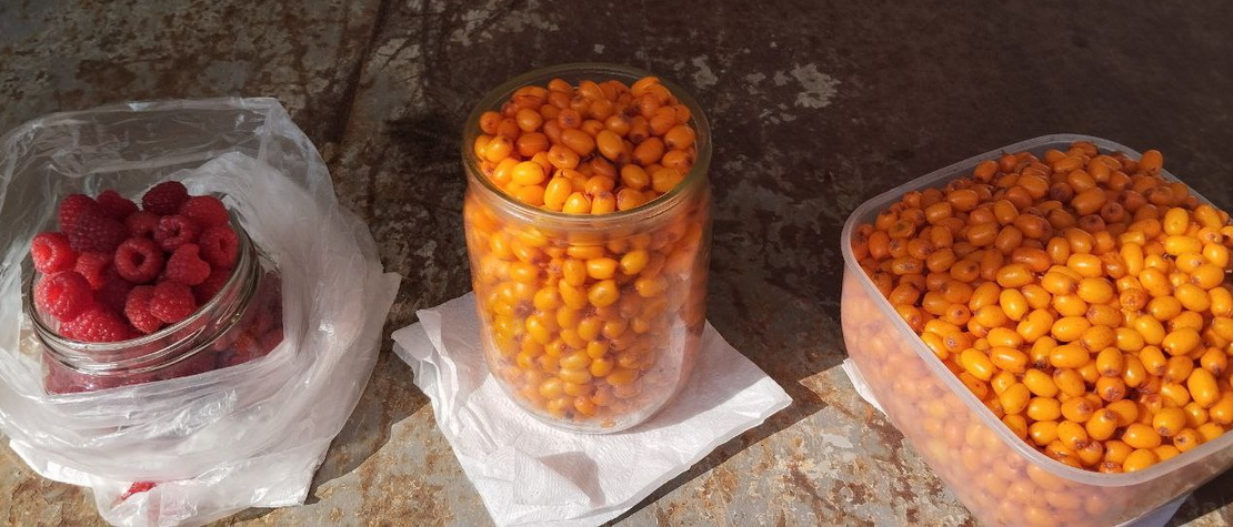 Из ягод на прилавках у частников встречаются облепиха — 8 рублей за пол-литровую банку, малина — 10 рублей за литр и клюква — 20 рублей за литр.