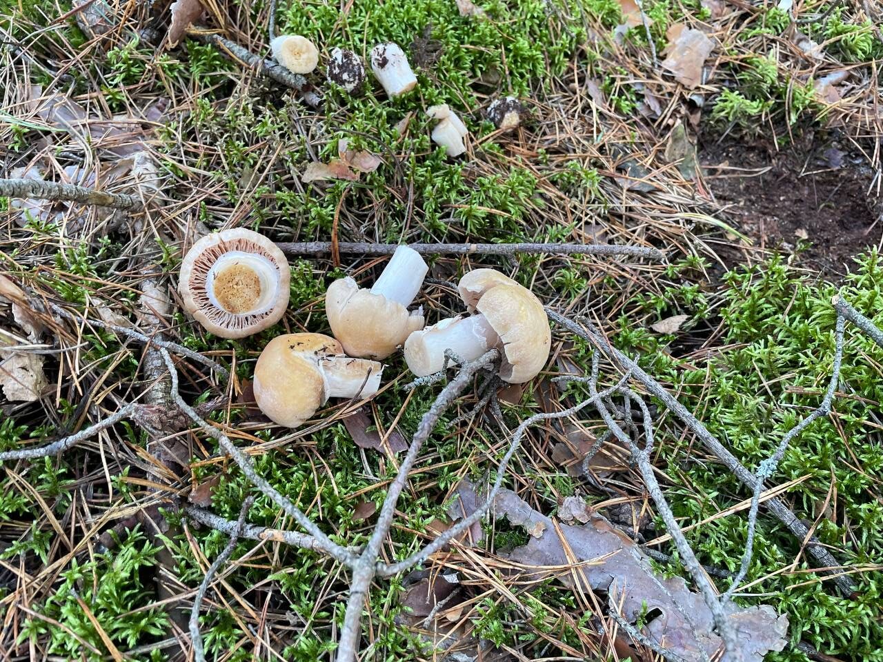 Мы выехали утром, прихватив ножи и корзины. Колпак кольчатый любит светлые сосновые леса, влажные места, покрытые мягким мхом. Здесь-то мы и начинаем искать заветные «солнышки», выглядывающие из-под земли.