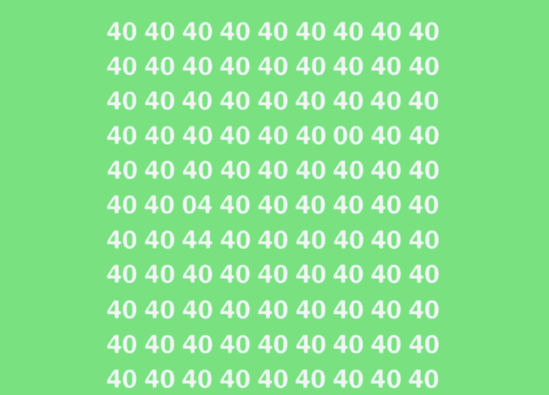 Среди чисел 40 спрятались такие комбинации цифр: 00, 04, 44. Вы же нашли их за 15 секунд?