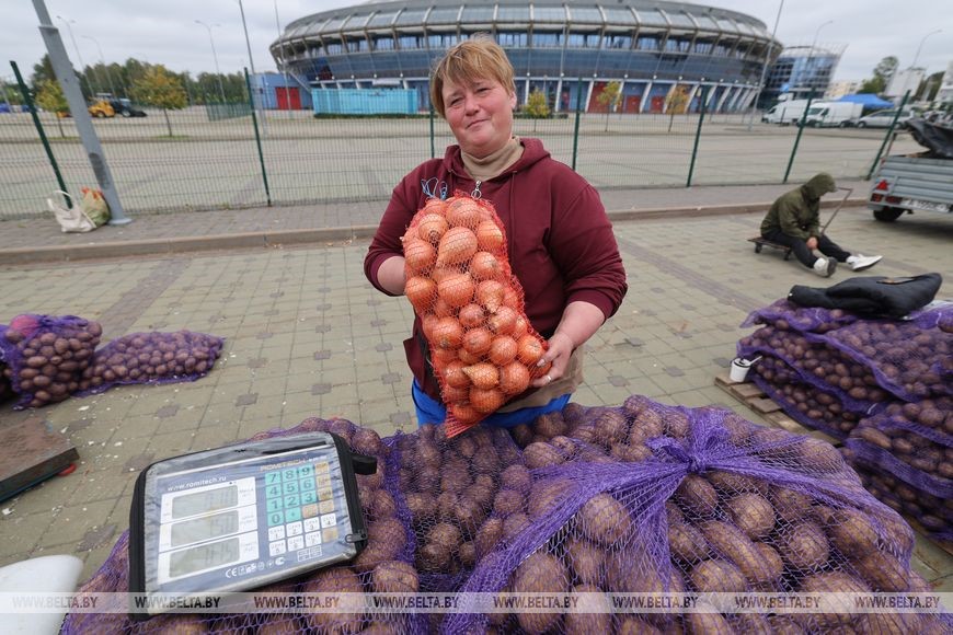 — Четыре сетки? Доставим после закрытия ярмарки! — обещает покупателю Ирина Головастая из Солигорского района, которая уже не первый год занимается выращиванием картофеля. Продает урожай исключительно в столице на осенних ярмарках.