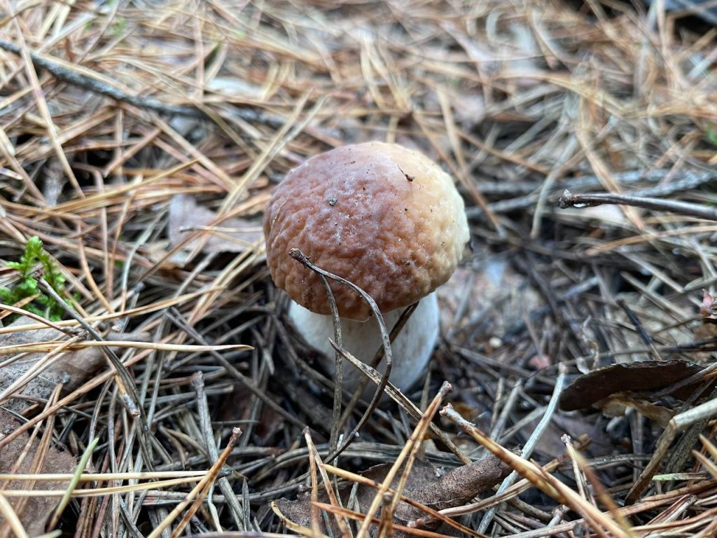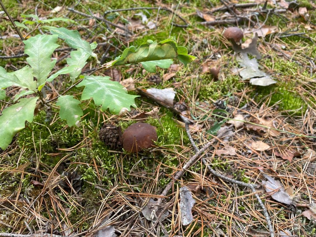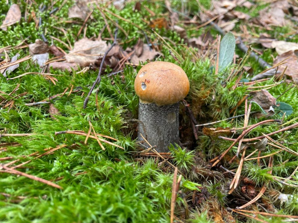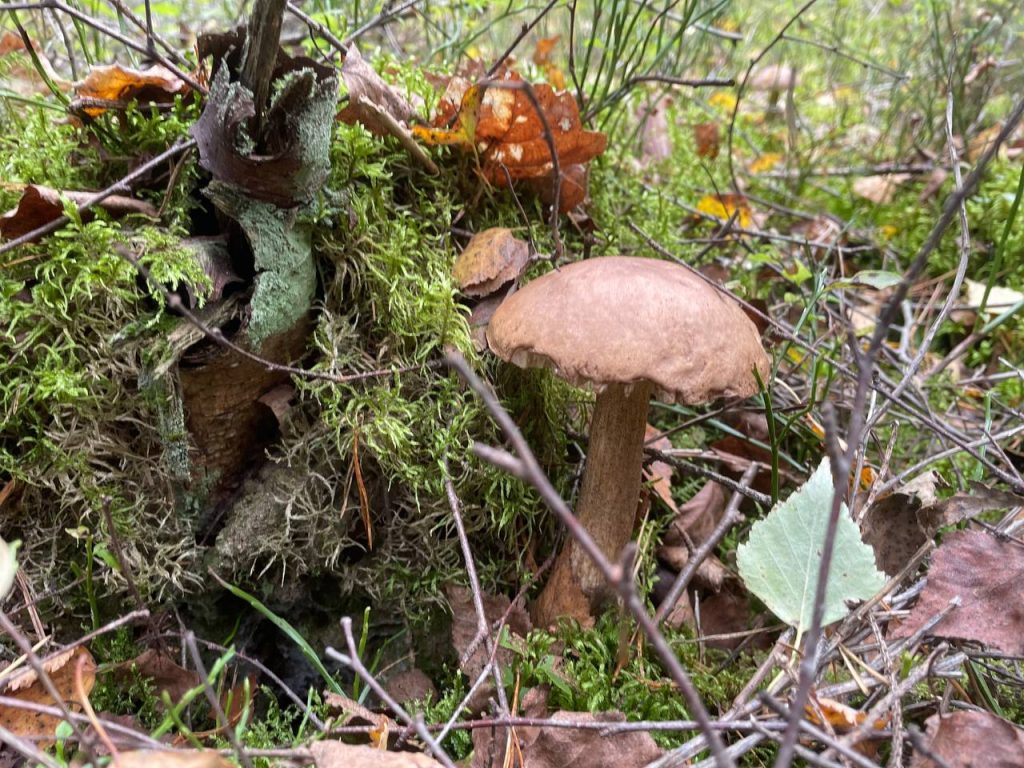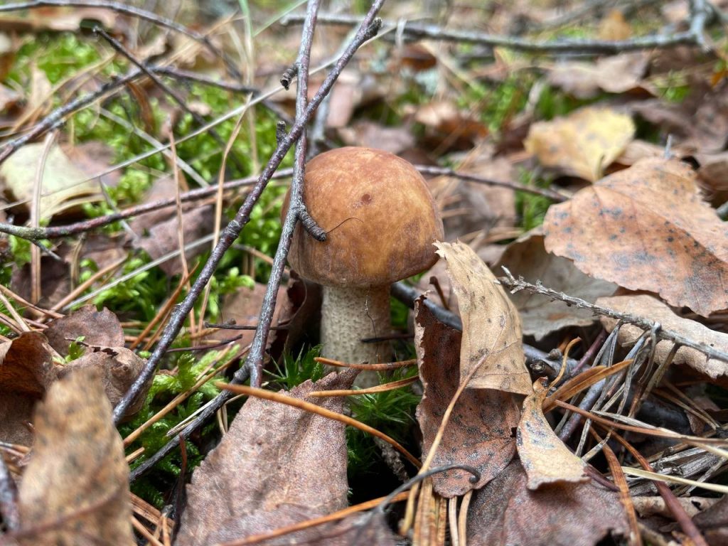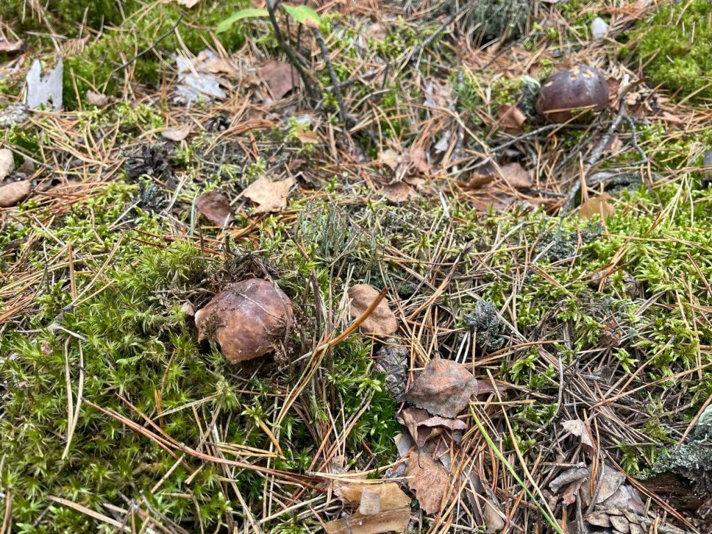 Судя по всему, сейчас осенние грибы только-только начали появляться: шляпки крошечные, еле видны сквозь траву и мох. Больше всего их нашлось там, где растёт черничник или брусничник, в зеленом мху, хотя попадались иногда и в чистом хвойнике.