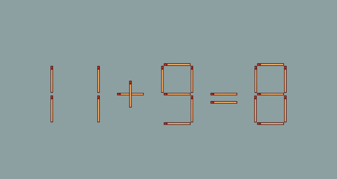 Перед вами неверное равенство: 11+9=8. Нужно перенести ровно одну спичку так, чтобы выражение стало правильным.