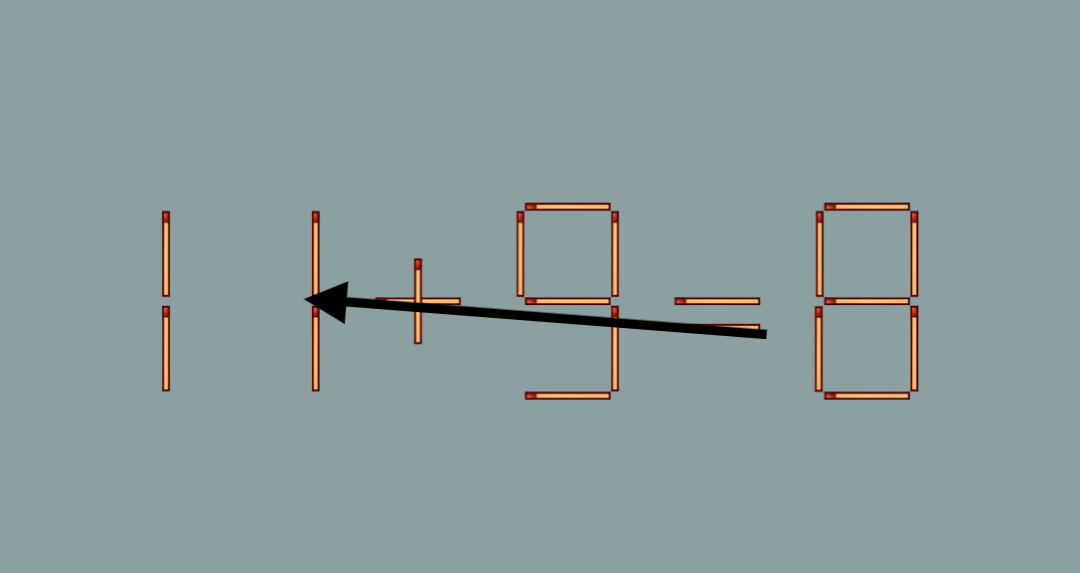 Предлагаем разгадать нестандартную головоломку со спичками. Ваша задача проста: перемещением одной-единственной спички сделайте правильное равенство. Спичку ломать и удалять нельзя, можно только поменять её положение.