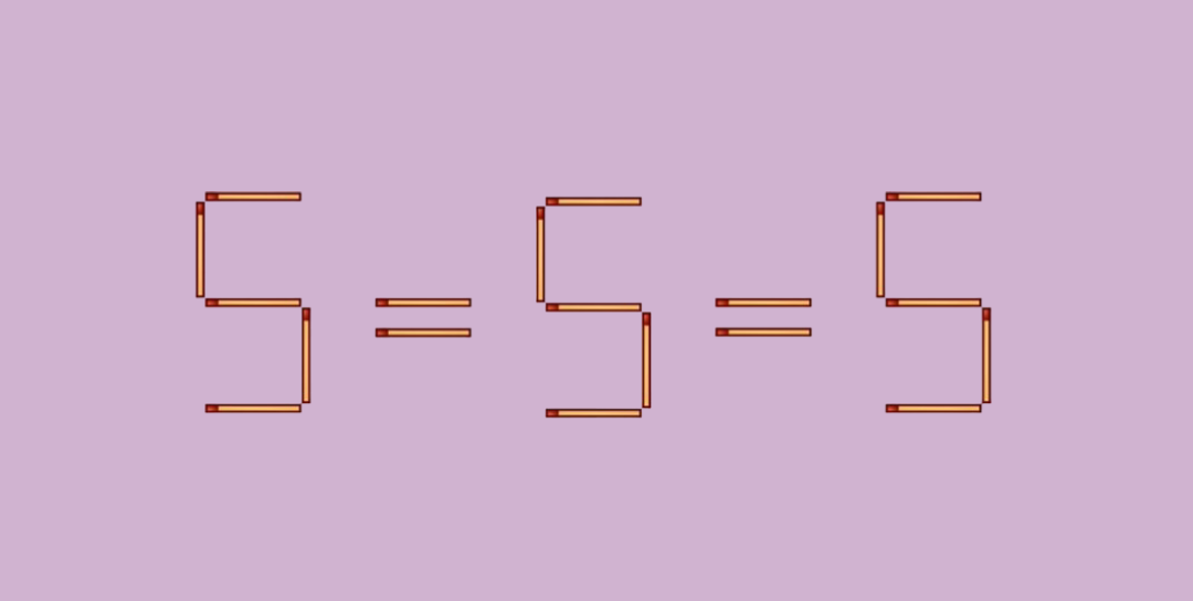 Первая пятерка получается путём перестановки спички из девятки — перекладываем ее, превращая знак «минус» в знак равенства, а две оставшиеся пятерки остаются неизменными.