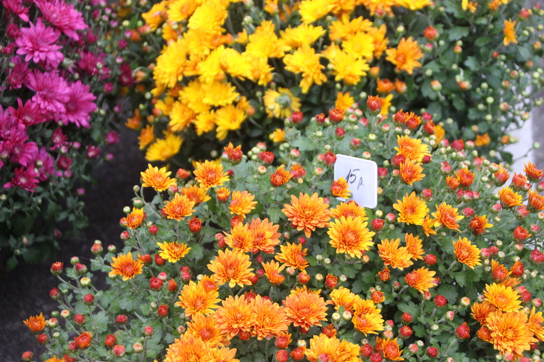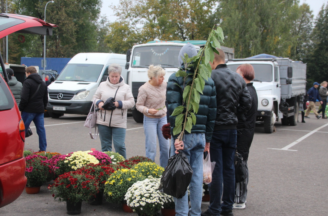 На ярмарке также можно было купить цветы. В основном продавали хризантемы (15–20 руб.) и гортензии по 10, 25 руб. Цветоводы приехали из Зельвы и Слонима.