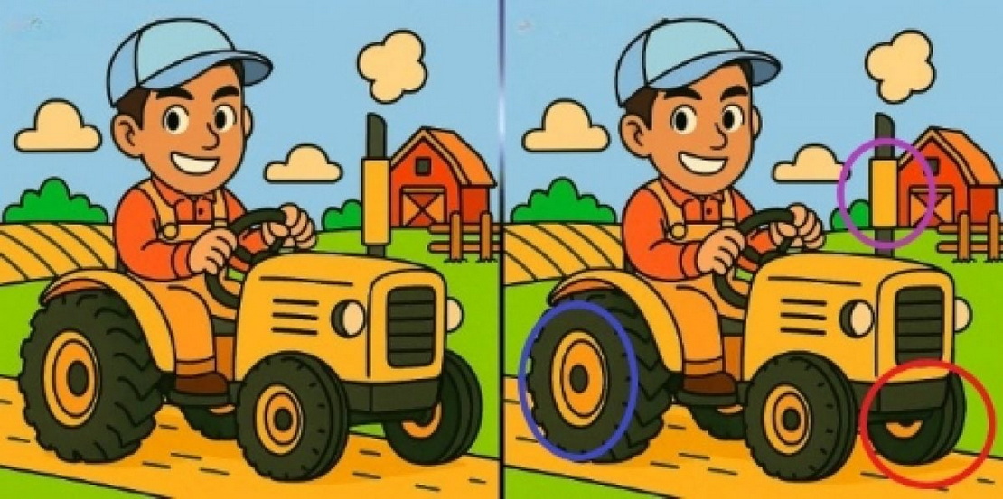 Найдите 3 отличия на картинках с трактористом за 75 секунд.