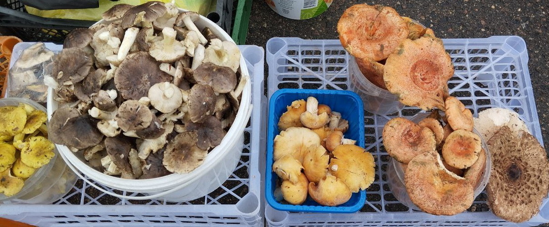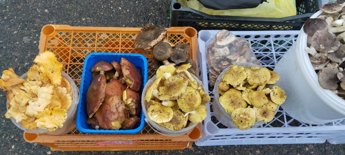 Осенний ассортимент на рынке радует разнообразием и ценами: лисички — 4 рубля за литр, маслята — 4 рубля, зеленки и подзеленки — 7 рублей, курочки — 3 рубля, зонтики — 5 рублей.