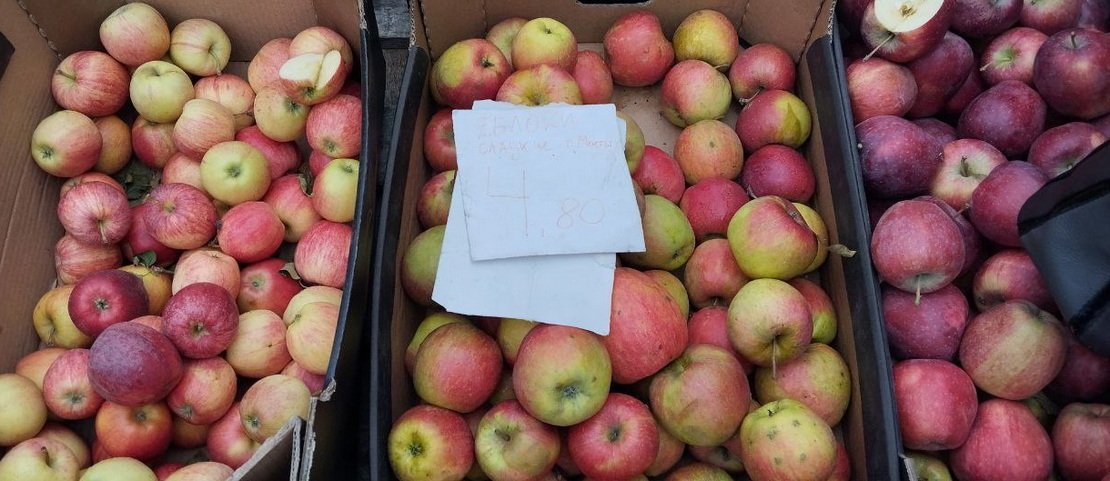 яблоки у частников по 3,80–4,80 рубля, у оптовиков — 4–6 рублей.
