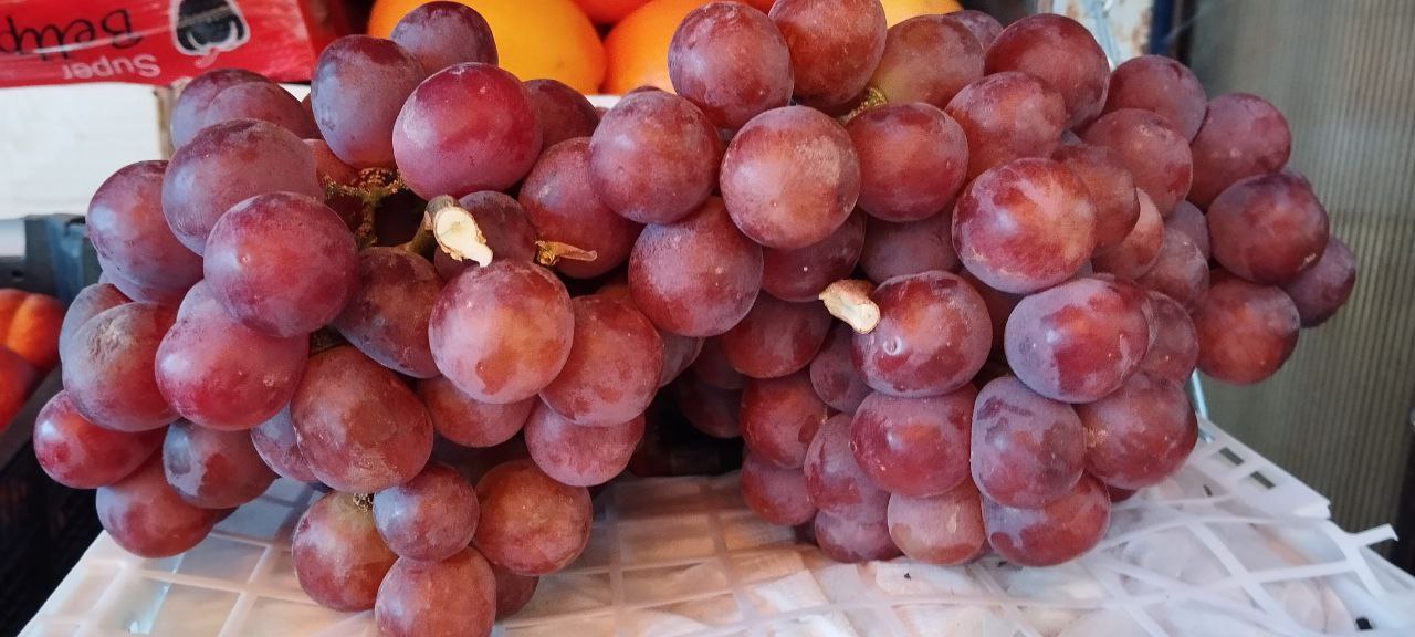 Сладкий уголок радует яркими красками: виноград Кардинал с крупными гроздьями продаёт Роман, который говорит, что сорт особенно вкусный;