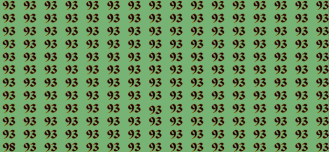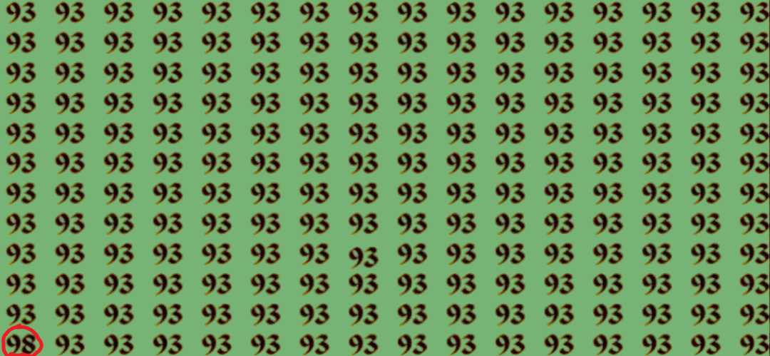 Перед вами море цифр «93», выстроенных рядами и столбцами. Одно число отличается от остальных — это 98. Ваша задача — обнаружить его как можно скорее.