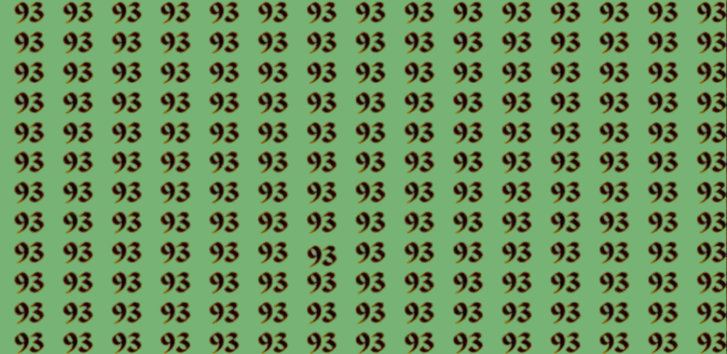 Перед вами море цифр «93», выстроенных рядами и столбцами. Одно число отличается от остальных — это 98. Ваша задача — обнаружить его как можно скорее.