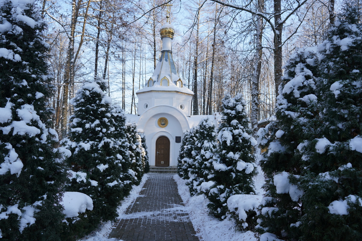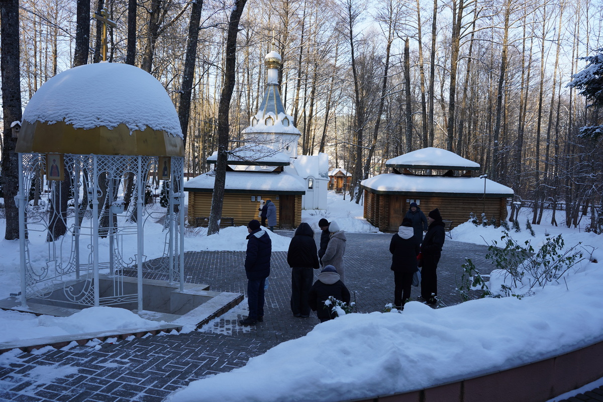 Погода в этом году способствовала паломничеству: день выдался морозным и ясным. Пик активности пришёлся на вторую половину дня, когда зимнее солнце уже клонилось к закату, заливая территорию обители мягким светом.