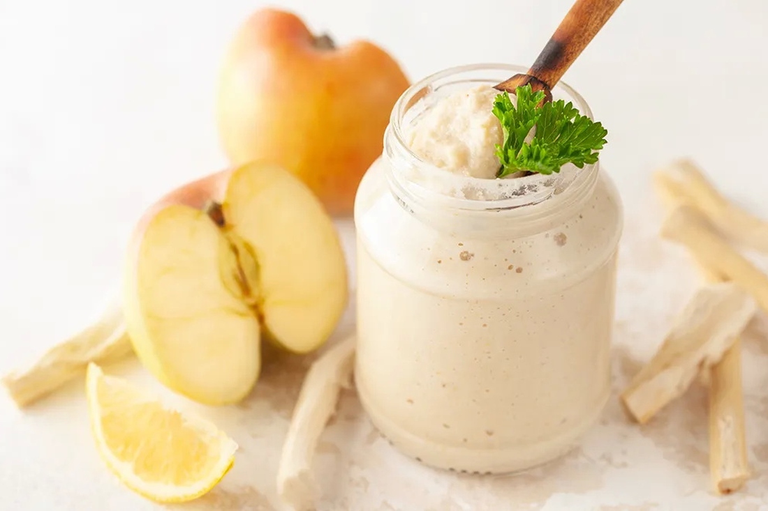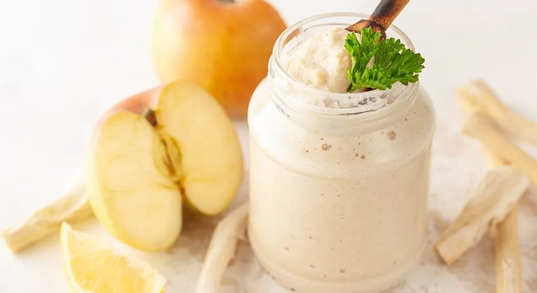 Если обычный хрен вам уже поднадоел, попробуйте этот вариант с яблоком. Благодаря яблочной кислинке и ложке мёда вкус получается ярким, сбалансированным и даже немного праздничным. Такая приправа оживит любое блюдо — от холодца до бутербродов, а готовится всего за 10 минут.