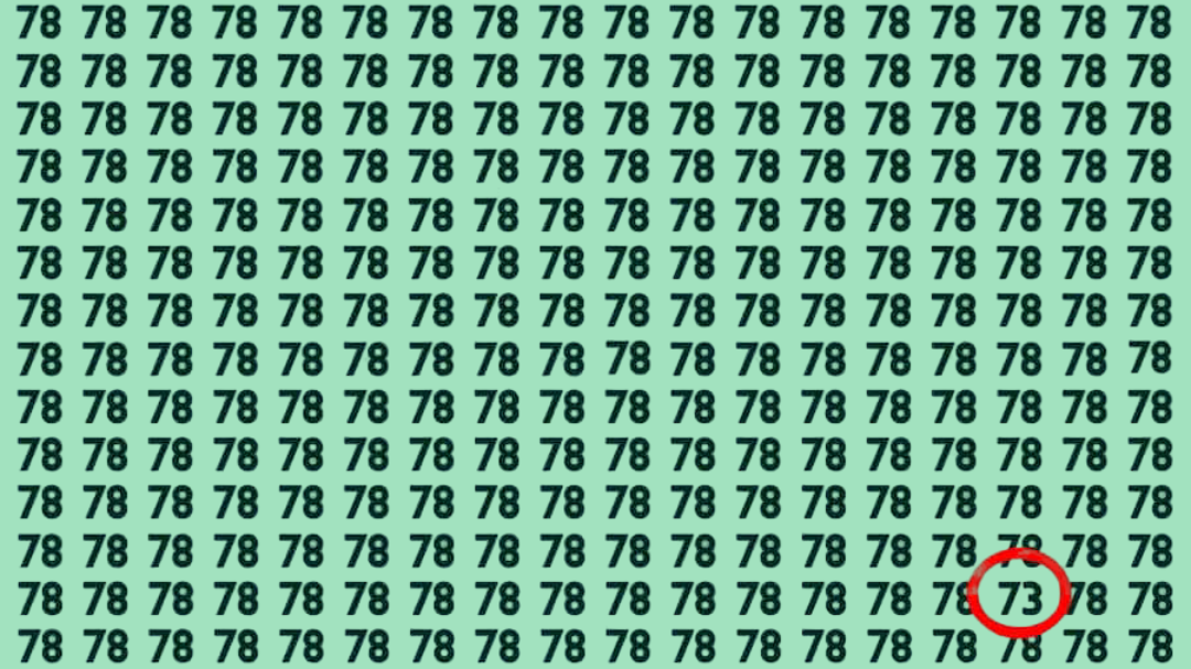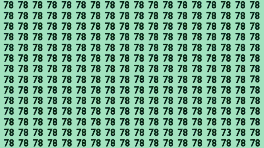 Головоломка создана специально, чтобы испытать ваши зрительные навыки. Она построена на сетке, где цифры 78 многократно повторяются, образуя однообразный фон. Именно в этом однородном поле цифр прячется единственное число 73.