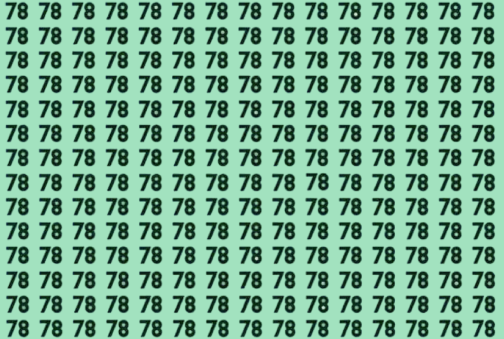 Головоломка создана специально, чтобы испытать ваши зрительные навыки. Она построена на сетке, где цифры 78 многократно повторяются, образуя однообразный фон. Именно в этом однородном поле цифр прячется единственное число 73.