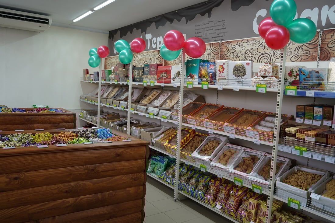 Здесь представлены конфеты, печенье, вафли, зефир и наборы конфет от популярных белорусских производителей — «Коммунарка», «Красный пищевик», «Витьба», а в ближайшее время появится и продукция «Спартака».