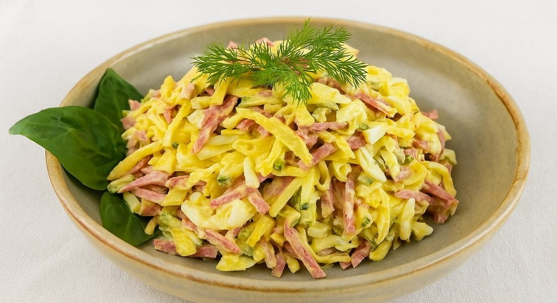 Перед подачей убираем салат в холодильник на 15–20 минут, чтобы он настоялся и стал ещё вкуснее.