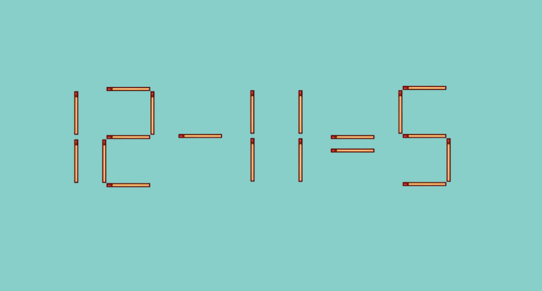 Перед вами неверное равенство: 12−11=5. Ваша задача — переместить ровно одну спичку так, чтобы равенство  стало верным. Нужно уложиться в 15 секунд.