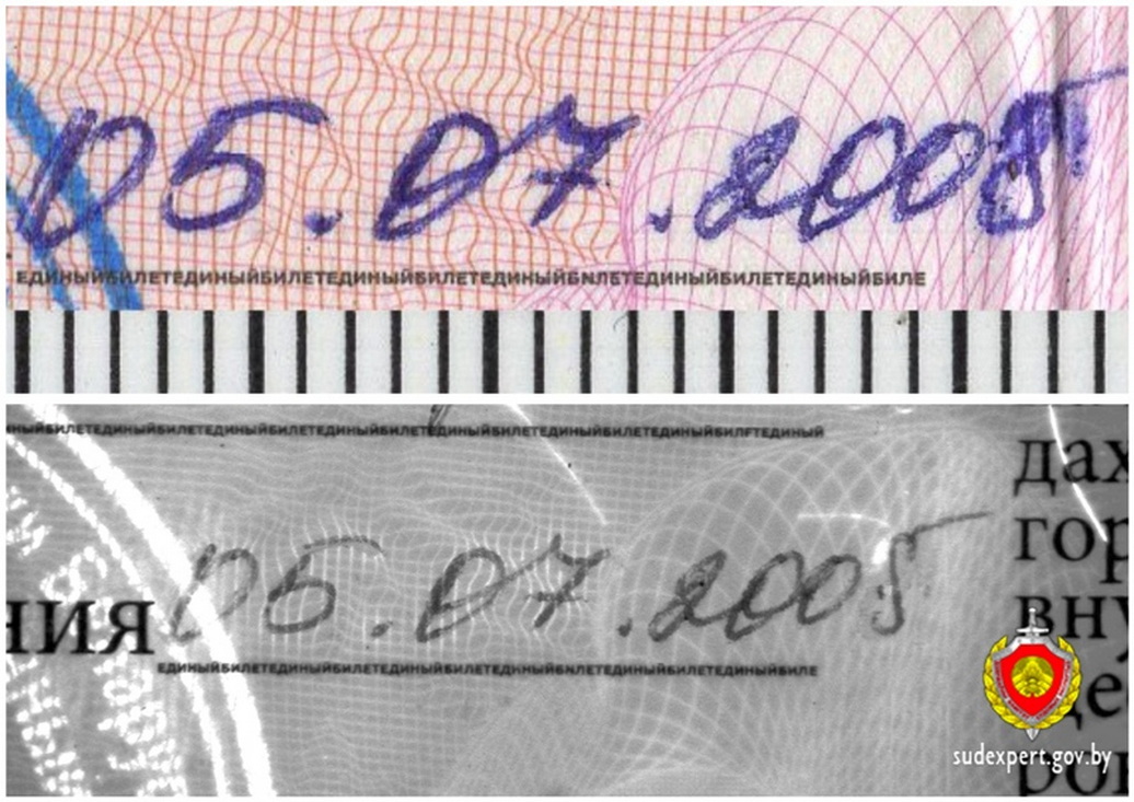Специалисты установили, что билет подвергался техническому изменению — цифра в дате рождения была дорисована. Первоначальная запись указывала на 2005 год рождения, однако в документе появилась изменённая цифра «8», будто бы владельцу ещё не исполнилось 18 лет.