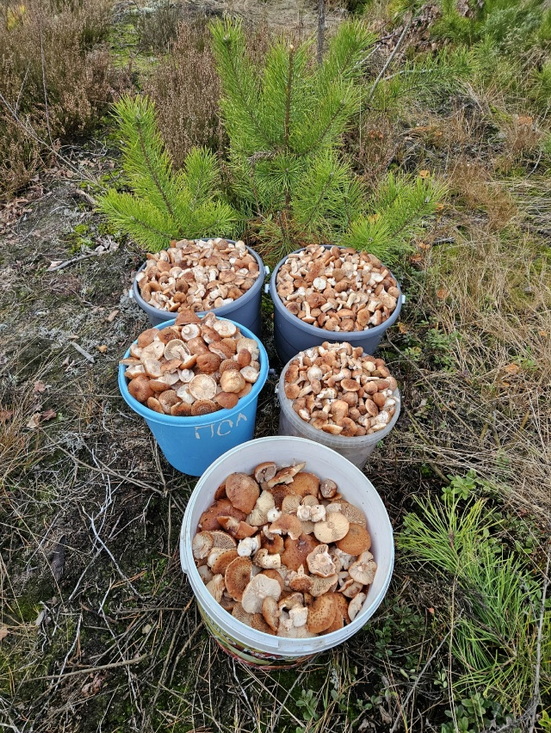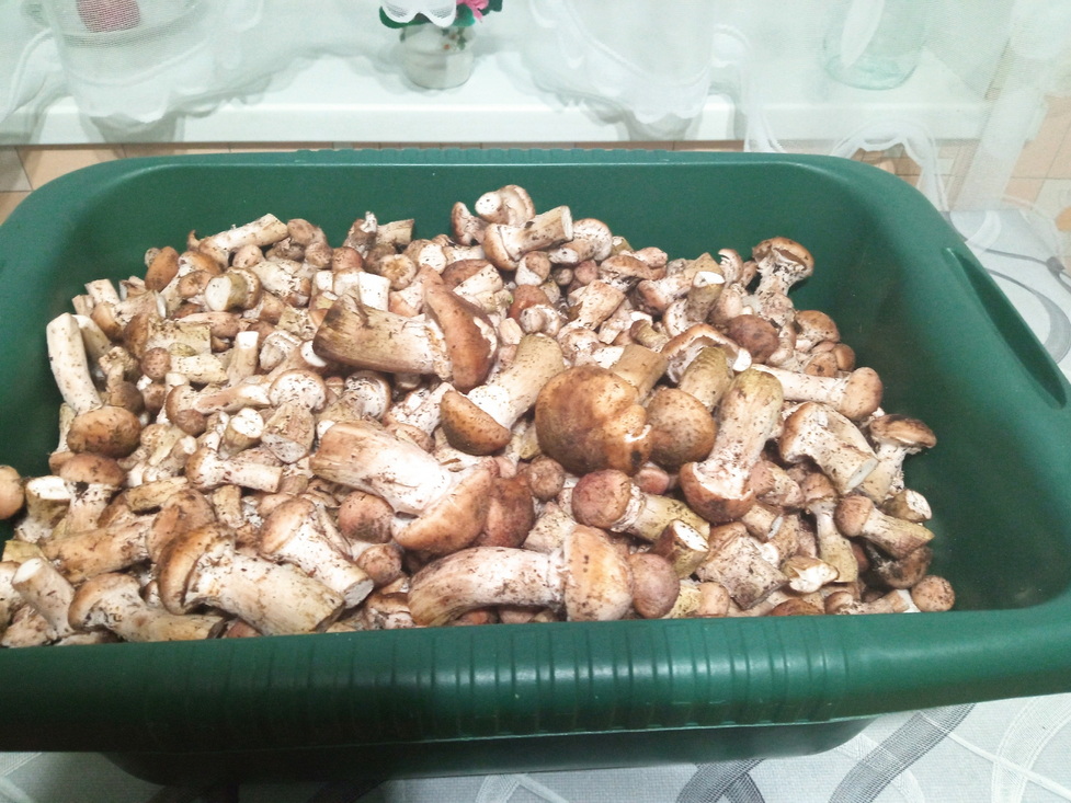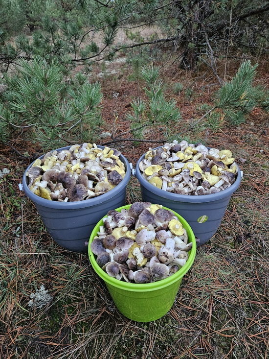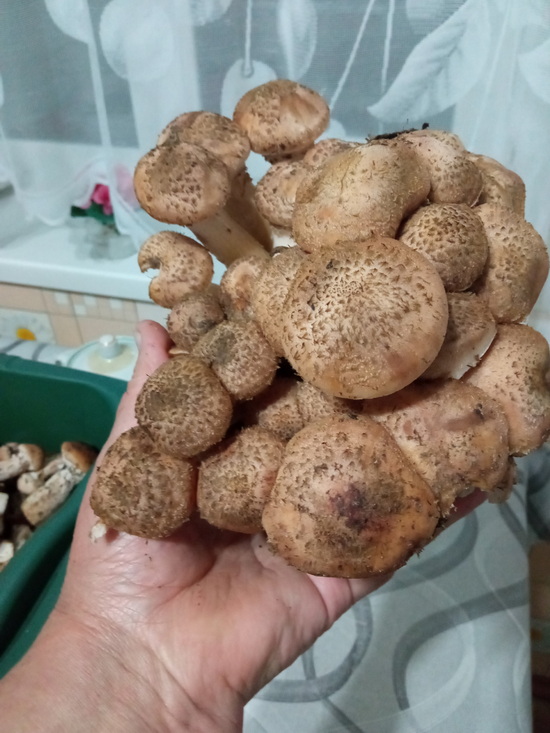 Olga Kalita рассказывает, что за три часа набрала три ведра подзеленков и зеленок, а «боровики-опята» растут прямо на вырубках, вокруг пней, в низких местах на чернозёме.