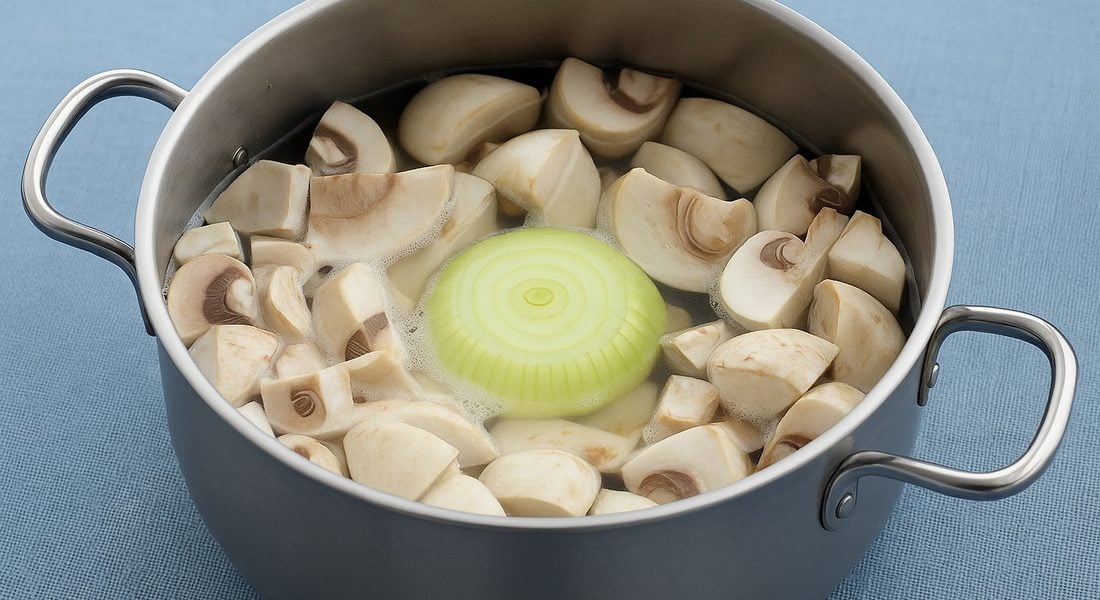 Если во время варки лук посинел или потемнел — значит, среди грибов, скорее всего, попались ядовитые экземпляры.