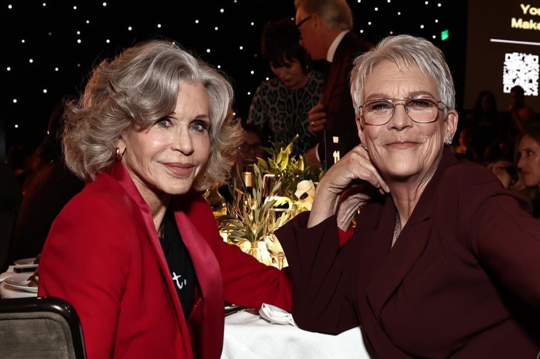 Кульминацией вечера стало вручение 66-летней Джейми Ли Кёртис премии «За жизненные достижения» Джейн Фондой, неподражаемой актрисой и иконой активизма. Джейн Фонда, всегда безупречная и харизматичная, появилась в элегантном красном костюме, который она дополнила футболкой Resist.