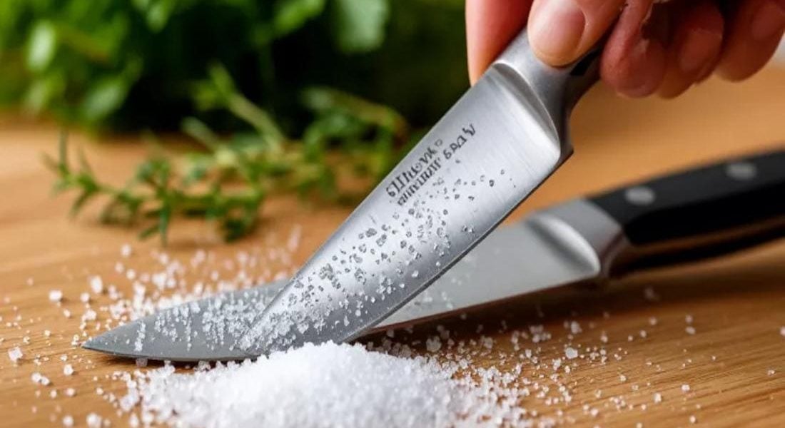 Через пару минут вытрите нож насухо — и он станет заметно острее и чище.