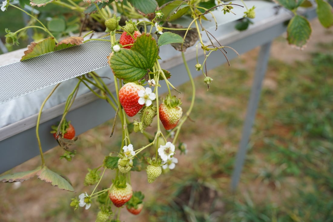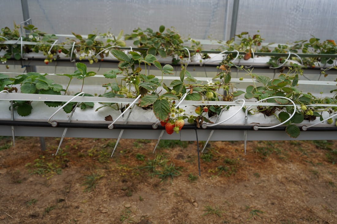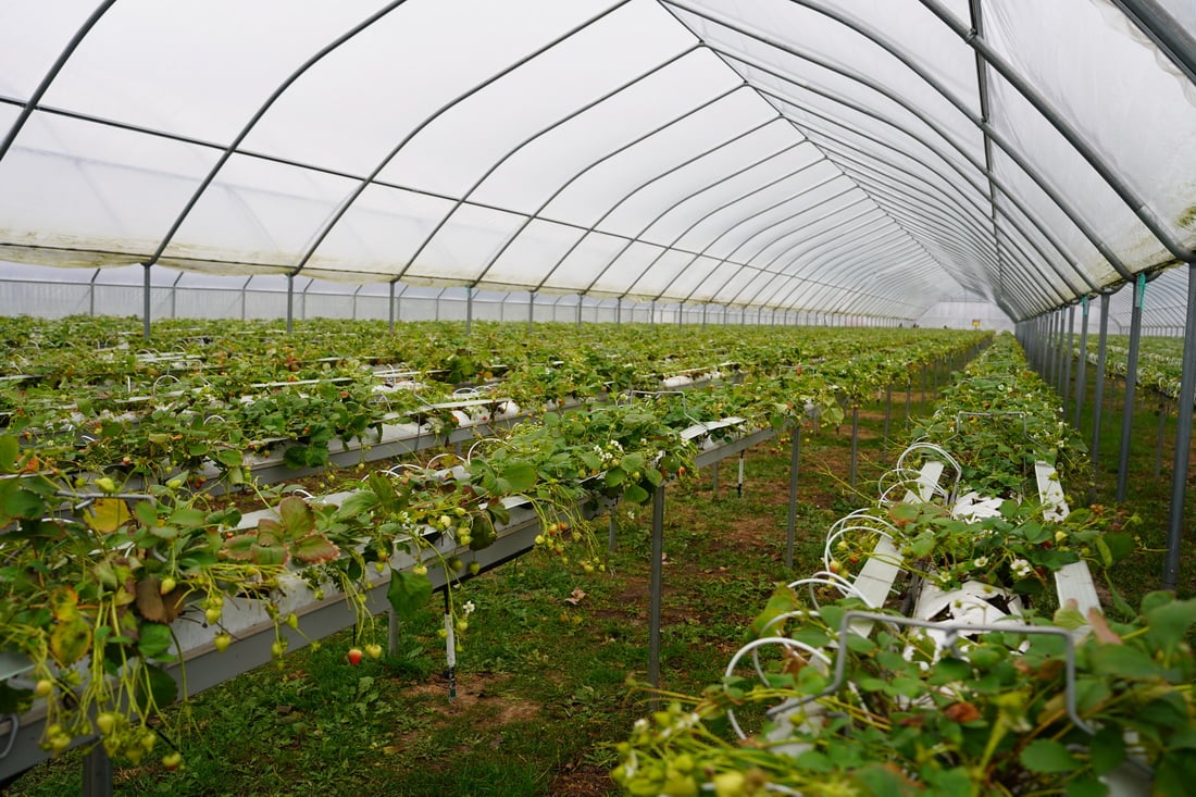 Клубнику здесь выращивают методом малообъёмной гидропоники — в мешках с нейтральным торфом, а не в открытом грунте.