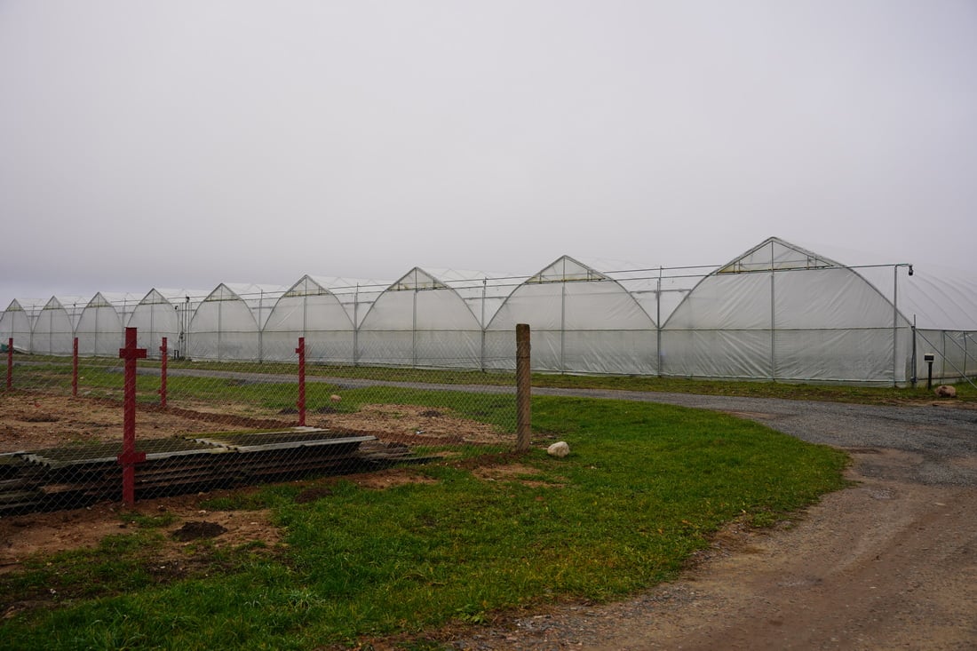 На улице поздняя осень, сыро и прохладно, а внутри — свой микроклимат: с лотков свисают гроздья ягод. Здесь попадаются и ярко-красные, и еще недозревшие, и однобокие плоды. Уже сейчас видно, каким красивым будет это место весной, когда зацветут тысячи кустов, и летом, когда вся теплица превратится в настоящий клубничный рай.