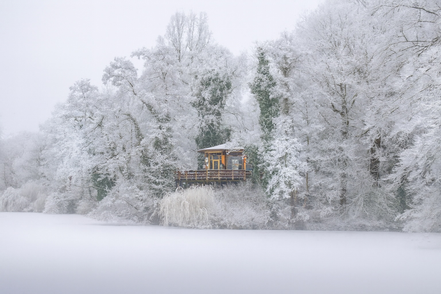 Если снег выпал, а листья на деревьях так и не опали, зима часто бывает лютой и ветреной.