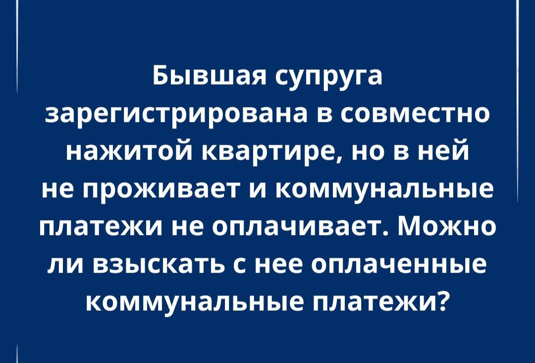 Следовательно, бывшая супруга должна производить оплату за ЖКУ.