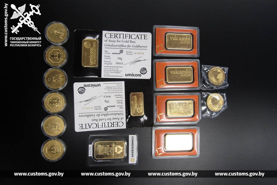 Однако при досмотре багажа инспекторы Гродненской региональной таможни обнаружили еще один металлический футляр. В нём находились 7 дополнительных слитков и 8 монет, которые мужчина не указал в декларации.