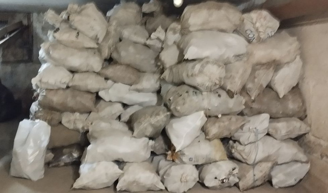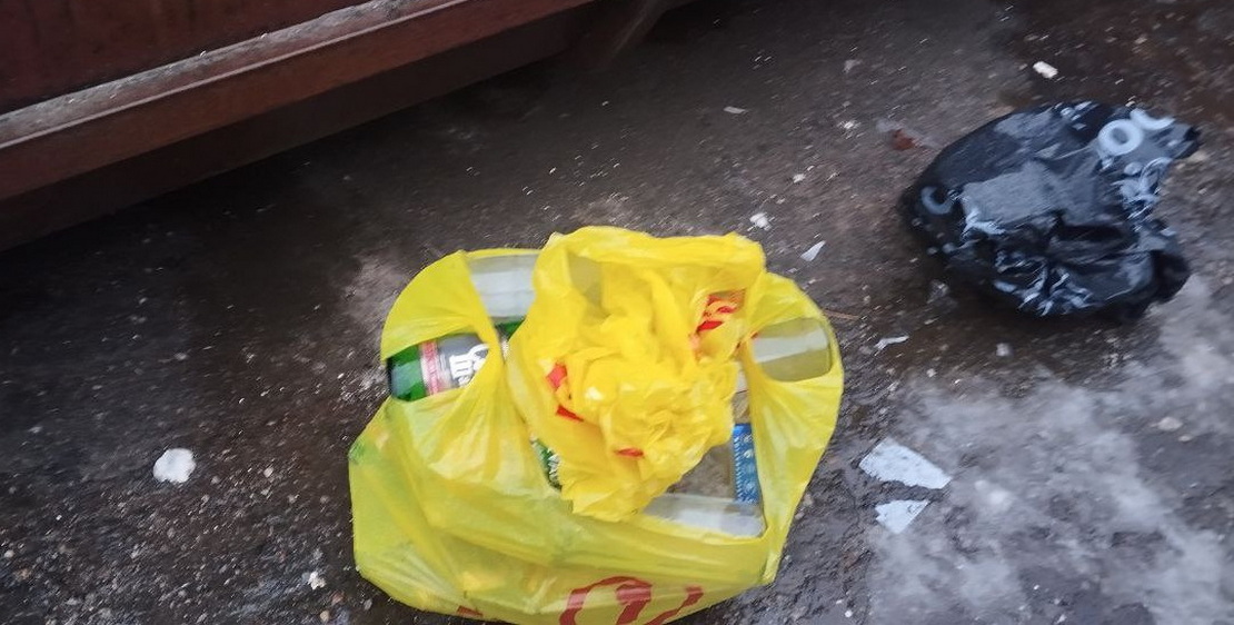 На одной из площадок для сбора мусора мы встретили мужчину, аккуратно складывавшего бутылки в мешки. Два мешка и два пакета — его сегодняшний сбор.