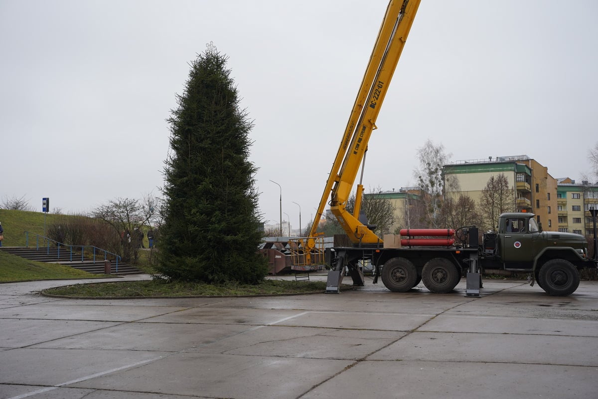 В Слониме продолжают подготовку к новогодним праздникам. Сегодня ещё одну зелёную красавицу начали устанавливать на улице Коссовской тракт — в районе многоэтажной застройки возле магазина и остановочного пункта.