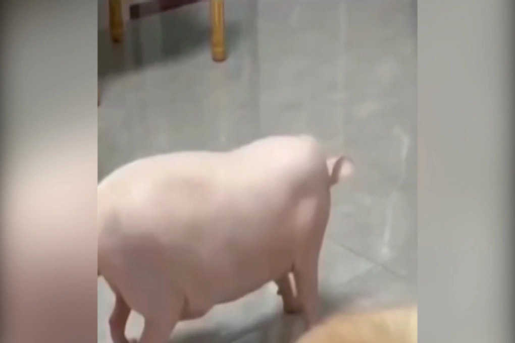 На видео непонятно, что это за зверь — свинья или кошка.