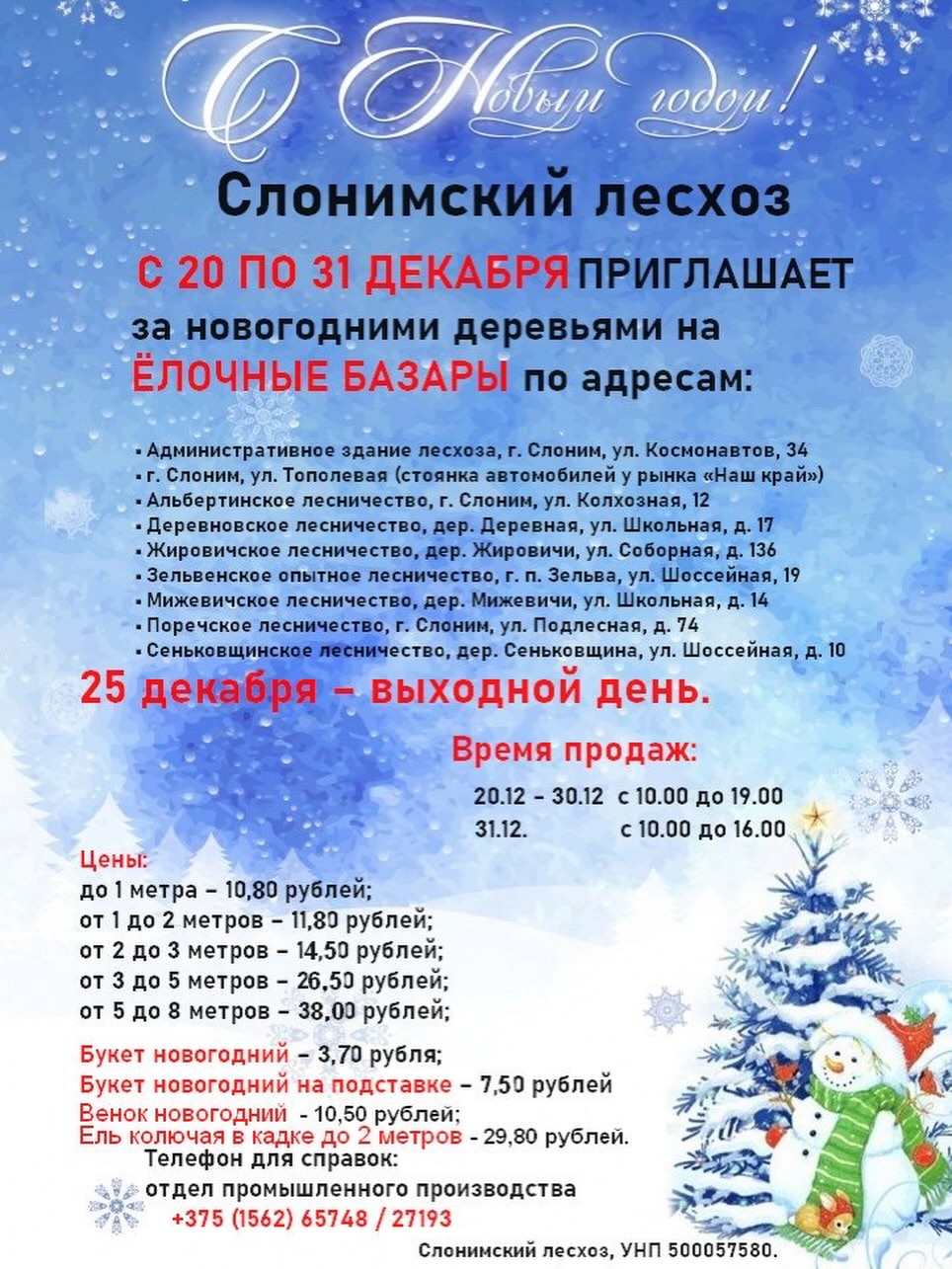 Когда откроются елочные базары и сколько будет стоить новогоднее дерево в Слониме