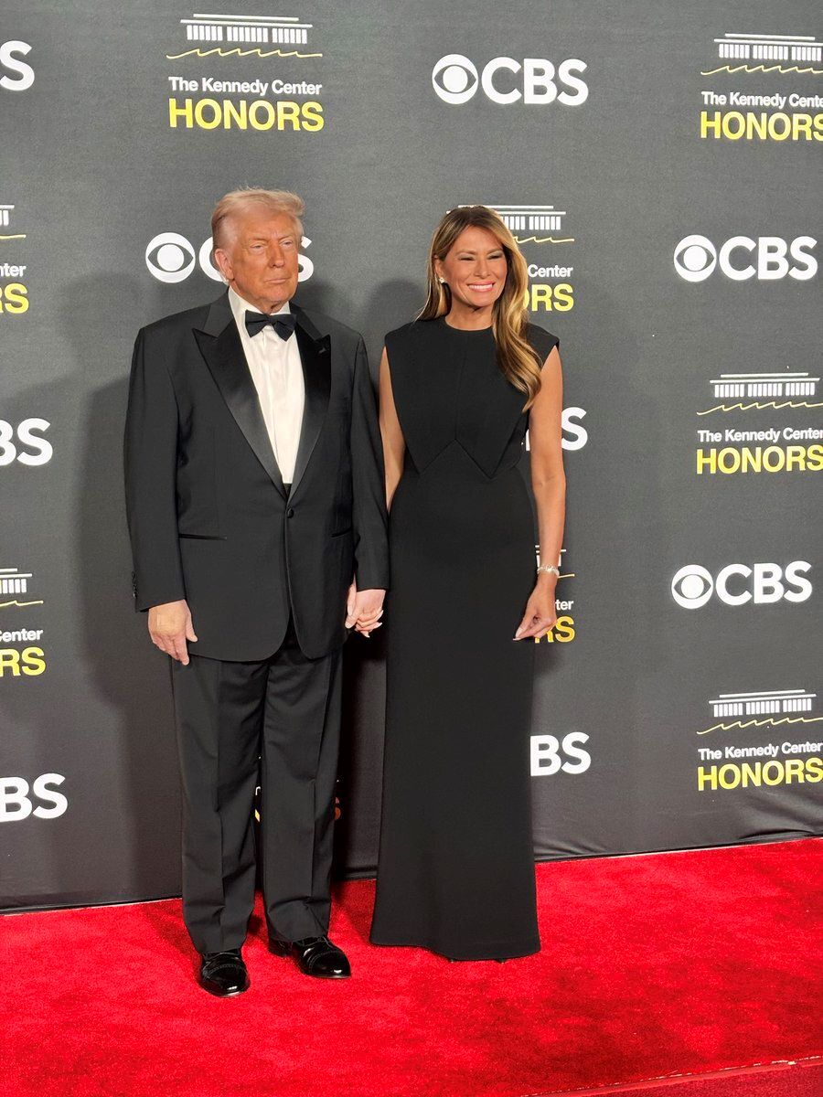 Президент Дональд Трамп предпочёл классическому стилю чёрный смокинг с белыми атласными лацканами и белоснежную рубаху, идеально вписываясь в строгий дресс-код black-tie. Но истинным украшением церемонии оказалась именно супруга главы государства, затмившая всех остальных женщин присутствующих.