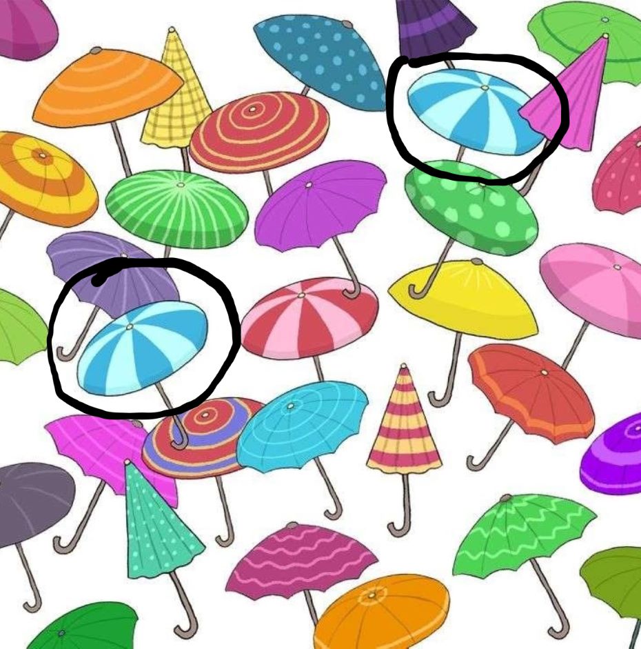 Головоломка для проверки IQ: сможете ли вы найти 2 одинаковых зонта за 5 секунд?