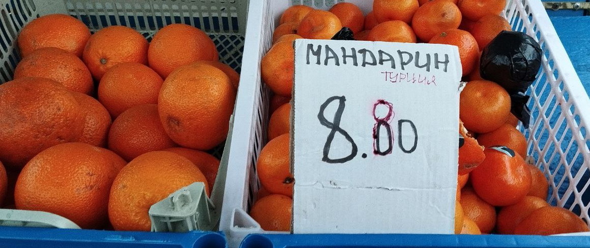 Мандарины стали дешевле: были 9,50–10 руб., сейчас — 7,50–8,80 руб.