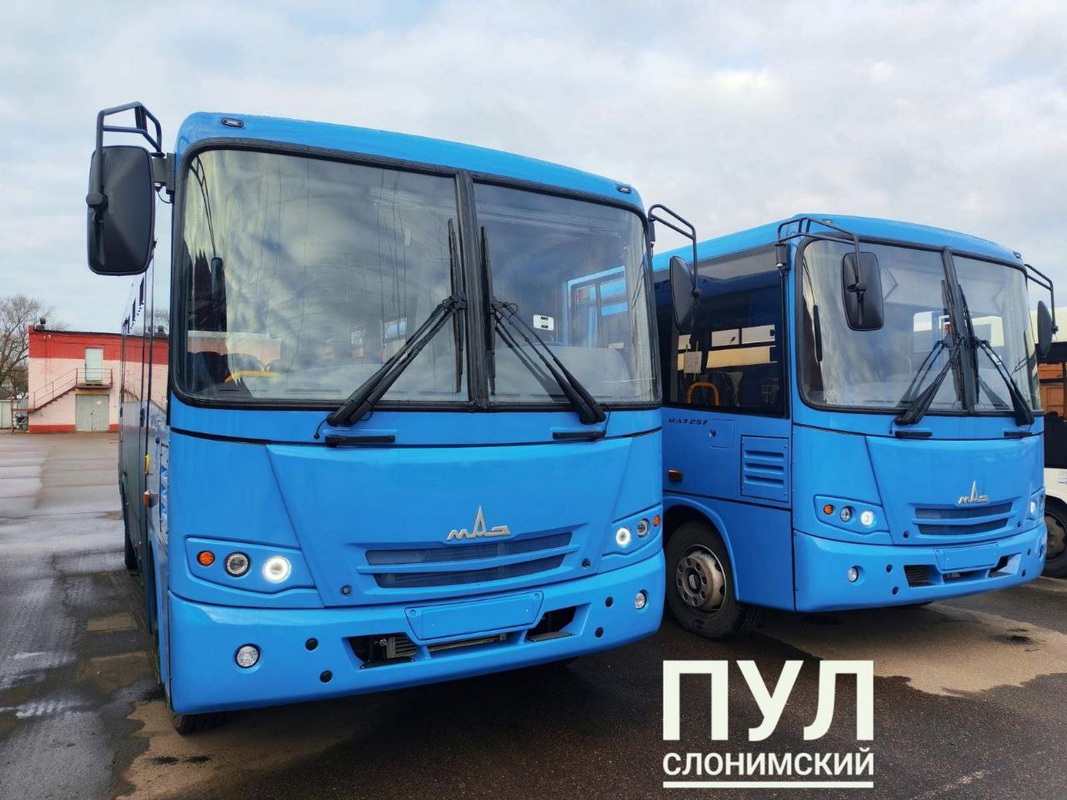 В автопарк поступили два новых автобуса МАЗ-257040. Транспорт планируют использовать на пригородных маршрутах, сообщает ПУЛ Слонимский.