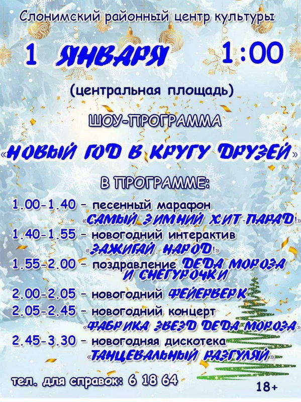 В Слониме пройдет праздничная новогодняя программа на центральной площади.